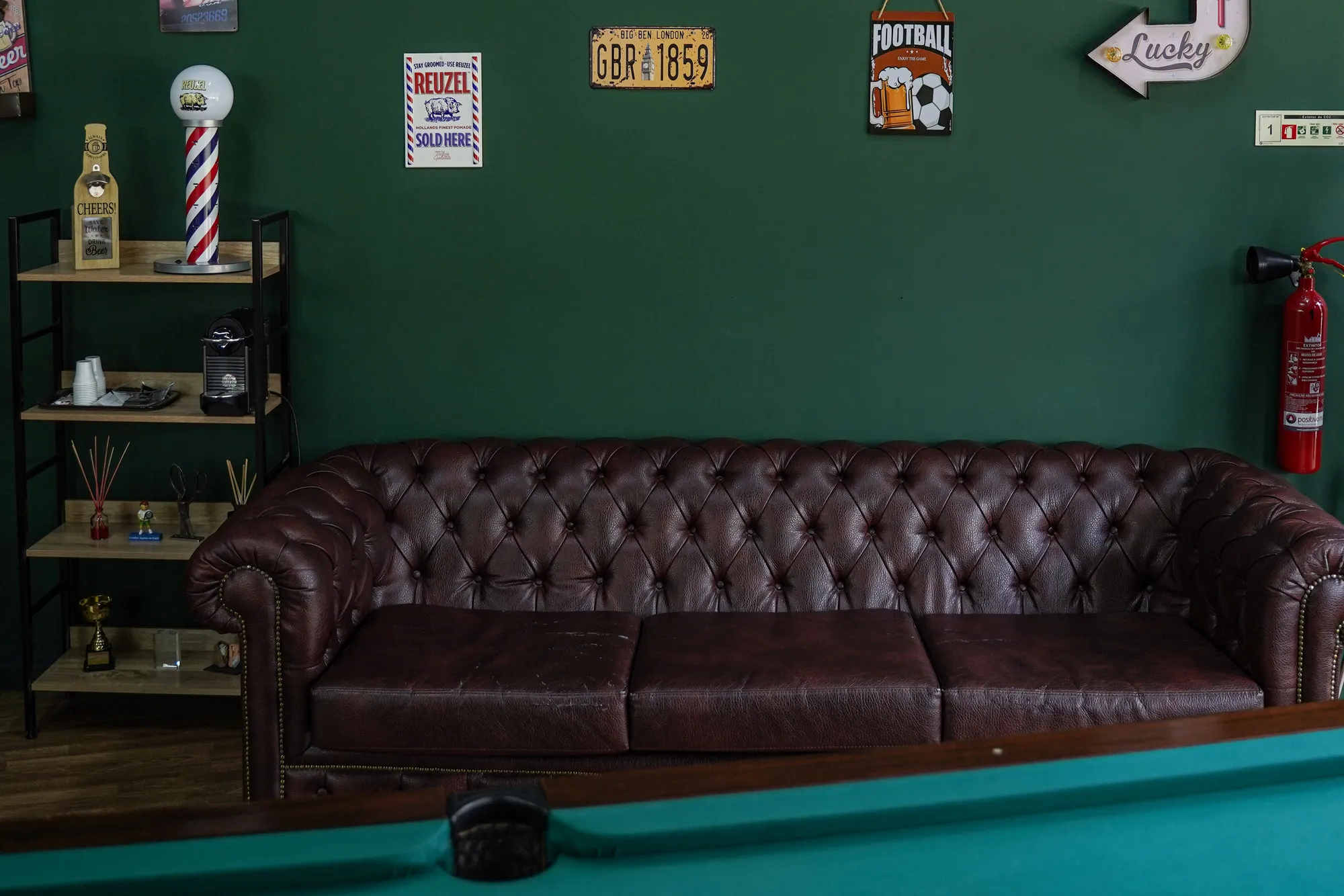 Fotografia de produto no local, coma decoração e elementos mais marcantes do espaços da Faria’s Barbearia. Uma forma de aumentar o vínculo emocional com os clientes que reconhecem e se identificam com os cenários, sem comprometer a dimensão estética que torna a compra mais apelativa.
